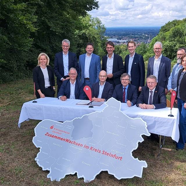 "Hier schließen sich zwei sehr gesunde Sparkassen zusammen," sagte Landrat Martin Sommer und sprach von großer Einigkeit. Die Fusion sei geräuschlos erfolgt: Die Beschlüsse in den entsprechenden Gremien (Zweckverbände, Stadträte und beim Kreis) seien ohne Gegenstimmen gefasst worden. Mit der neuen Kreissparkasse Steinfurt entsteht eine neue starke Sparkasse mit einer Bilanzsumme von knapp sieben Milliarden Euro, die viertgrößte im Münsterland. 22 der 24 Städte und Gemeinden plus der Kreis Steinfurt sind Träger.