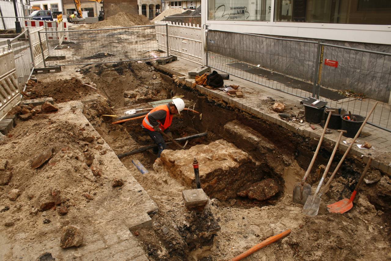 Im Zuge der Sanierung des Marktplatzes liefern die Bauarbeiten einen Blick in die Geschichte der Stadt Rheine. Mittelalterliche und neuzeitliche Grundmauern sind genauso freigelegt worden wie uralte Gruben und Bodenschichten, die viel über das Leben der Menschen damals verraten. Besonders interessant sind auch die Grundmauern des alten Rathauses aus dem späten Mittelalter. Zu den gefundenen Gegenständen gehören unter anderem Keramikscherben und Feuersteinartefakte. Das Highlight ist ein vergoldeter Beschlag. Auf ihm sind zwei Fische zu sehen. Das Teil war früher an einem Lederriemen befestigt und stammt aus dem frühen Mittelalter.