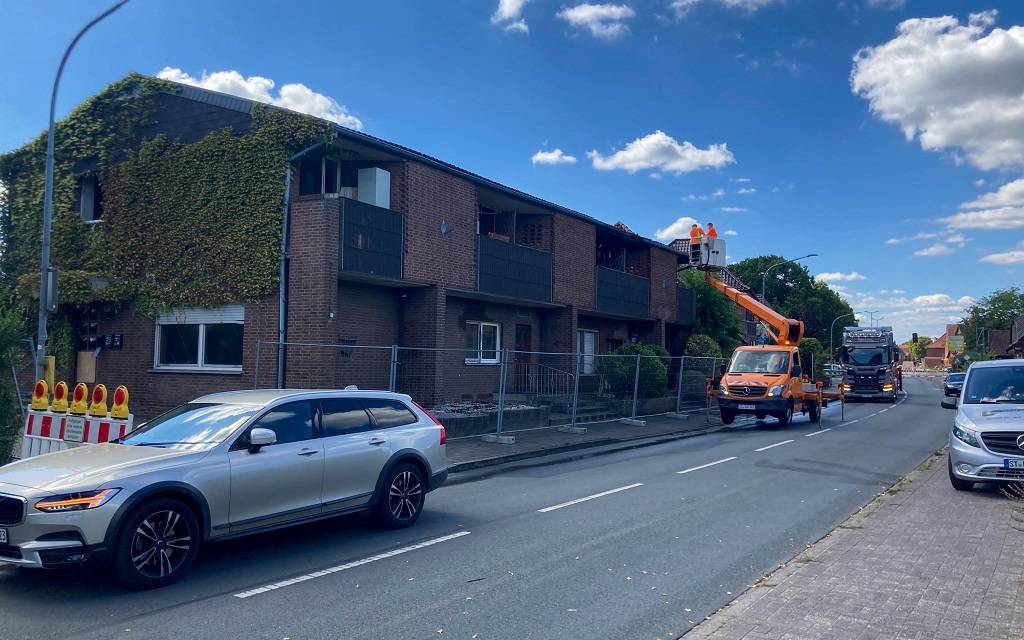 In der Nacht von Sonntag auf Montag brach in einer kommunalen Unterbringungseinrichtung an der Mesumer Straße in Neuenkirchen ein Brand aus. Eine Person wurde durch einen Atemschutztrupp gerettet, bevor das Feuer auf den Dachstuhl übergriff und sich zu einem Vollbrand entwickelte. Rund 65 Einsatzkräfte waren über acht Stunden im Einsatz, unterstützt durch Feuerwehren aus Rheine, Wettringen und Salzbergen. Die Verpflegung der Einsatzkräfte übernahm das Deutsche Rote Kreuz Neuenkirchen.