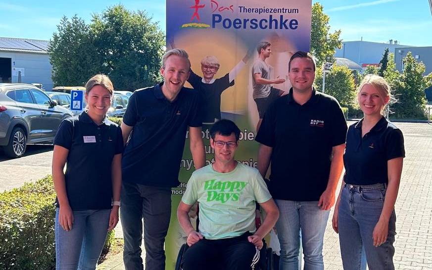 Als Ergotherapeut war Till im Therapiezentrum Poerschke in Ibbenbüren im Einsatz. Die Ergotherapeutinnen und Ergotherapeuten Elinor, Jane und Simon zeigten Till dabei die typischen Aufgaben des Berufs, von der Therapievorbereitung über die Durchführung mit den Patientinnen und Patienten. Unter anderem schlüpfte Till selbst in die Rolle des Patienten und trainierte alltagsnahe Situationen spielerisch, zum Beispiel auf dem Laufband.