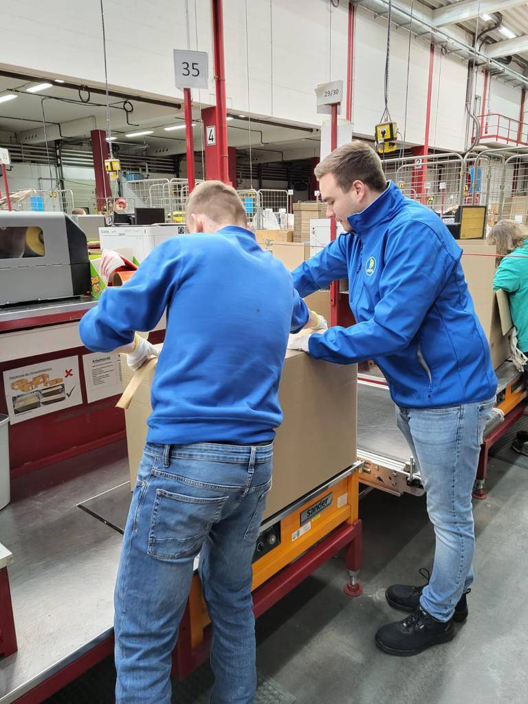 Als Fachlagerist war Till im Lager in Lotte im Einsatz. Dort übernahm er alle relevanten Aufgabe des Ausbildungsberufs der Fachkraft für Lagerlogistik. Dazu gehörte: Die Annahme der Paletten aus dem LKW, die Einlagerung der Ware mithilfe eines Gabelstaplers und die Kommissionierung und Verpackung für den Endkunden. Angeleitet wurde er dabei von den drei Auszubildenden Laura (22), Marvin (22) und Valeria (17).