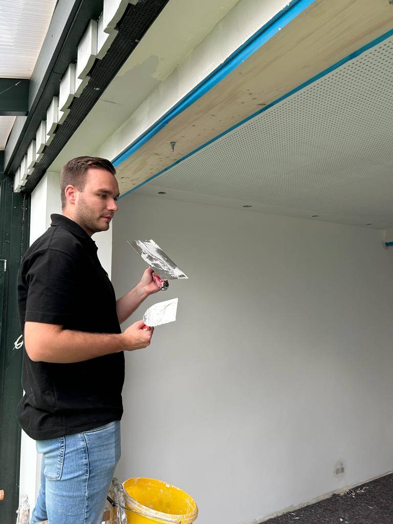 Als Maler und Lackier war Till bei der Firma my Niehues in Neuenkirchen im Einsatz. Zusammen mit der Auszubildenden Viktoria und Geselle Dominik renovierte Till das Vereinsheim des SuS Neuenkirchen. Zu seinen Aufgaben gehörte es einen Balken zu grundieren und einen Türahmen zu lackieren. Der Beruf hat jedoch noch weitere Aufgaben zu bieten: Als Malerin und Lackiererin oder Maler und Lackierer gestaltest du Außen- und Innenbereiche und verpasst ihnen einen neuen Look: Wände, Decken, Fassaden oder ganze Gebäude – du streichst, tapezierst oder restaurierst.